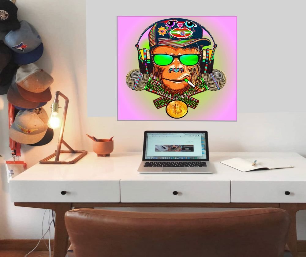 Hip-Hop trifft digitale Kunst: Der Drive Monkey mit seiner leuchtenden Neon-Sonnenbrille, fetten Kopfhörern und goldener Bitcoin ist der absolute Street-Style-Superstar. Mit psychedelischen Mustern, die vor Energie platzen, und einem Look, der sagt „Ich weiß, was ich will“ – dieser Affe ist pure Coolness. Handsigniert und limitiert auf 25 Exemplare. Der Beat, der Style, das Statement. Ob Leinwand oder Aludibond: die Farben explodieren an deiner Wand.
